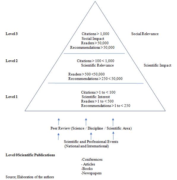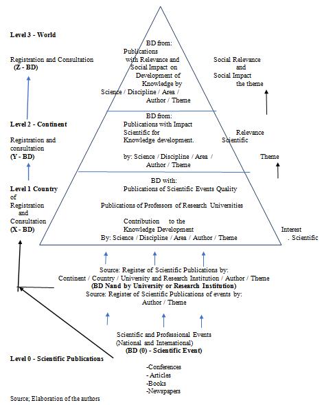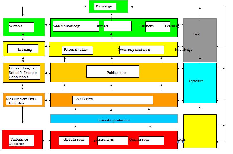 ABSTRACT:World reality is evolving faster than scientific research capacity is able to systematize its understanding. At the heart of globalization is technological development. Today we are experiencing a profound technological revolution. In the last twenty years more technological and scientific knowledge has been accumulated than in the entire history of mankind. This has a positive side due to the significant advances in terms of increasing productivity that has been achieved, due to advances in health, information and so many others. Technological progress has not had a corresponding advance in institutional terms, especially at the civilizational level, which makes it explosive for society.The globalization of information promotes the integration of research, seeking to contribute at the same time to a significant improvement in the production, peer review, retrieval, dissemination, interpretation, and usefulness of scientific information. The dissemination of knowledge is done through events, conferences, and publications. To understand a scientific field, whatever it may be, this research considered the possibility of analyzing the elements involved, the established relationships, the processes of production, evaluation, storage and dissemination of knowledge. Based on the quantitative and qualitative results of Web Science, it is possible to recognize and applaud the researchers who contribute the most / contributed to the development of different sciences / disciplines / areas of the scientific field, by analyzing their citations.The research proposes a global hybrid conceptual model of production, peer review, storage and dissemination of scientific knowledge, based on scientific publications (books, articles, conferences), on specialized journals, their evaluation models and the main units of measures used, as well as indexing, for the dissemination of scientific knowledge. Hierarchical models are proposed to separate the initiates from those who contribute the most (the highly cited) to the development of knowledge, the respective scientific field and its characteristics of universality. It contemplates the theoretical and practical discussion of the global conceptual model, the units of measurement and their meaning, in their different approaches.