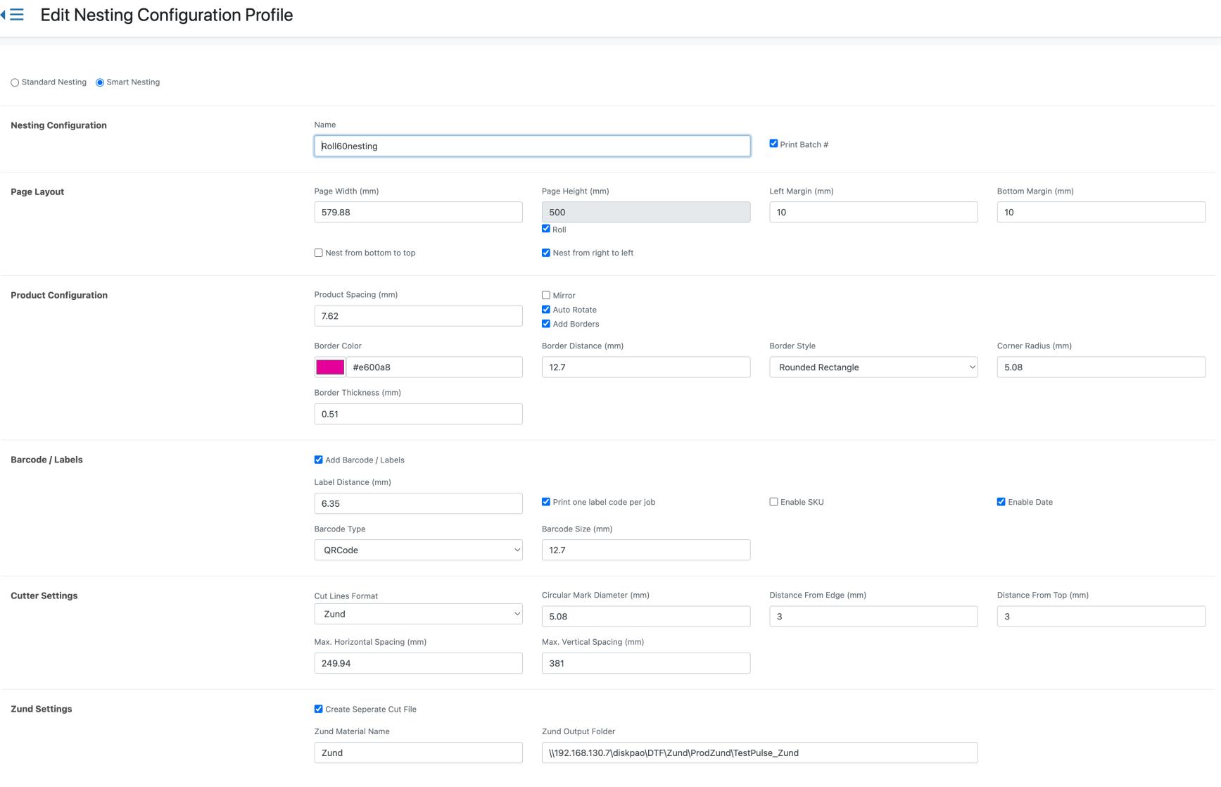 Advanced nesting settings