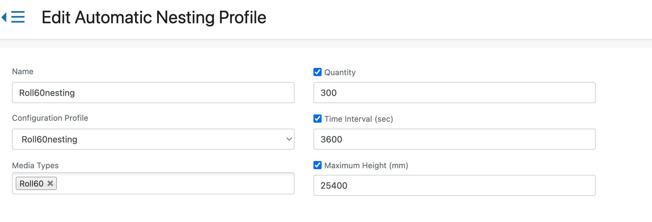 Automatic nesting profiles
