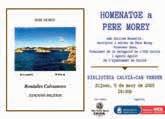 Antoni Vicenç escriu un dossier, des de l’amistat que els unia, sobre l’escriptor Pere Morey i la seva obra, vinculada a Mallorca i a Calvià. Residia a Portals i ha estat una persona rellevant com a escriptor, activista cultural, divulgador i defensor de les nostres arrels i la nostra terra.