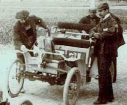 El tricicle amb motor s’assembla molt a un De Dion Bouton del 1900. Moltes empreses (com Ariel, Peugeot, etc.) feien tricicles a motor per ser més estables que les bicicletes o les motos (les primeres van ser del 1885). No té davant cap far, com si tenien altres models de la mateixa o d’altres empreses. El preu de cap dels dos vehicles no era econòmic, i el fet de portar al cotxe una càmera de fotos estereoscòpica implica que probablement el propietari era una persona adinerada. La producció de cotxes en sèrie és molt poc anterior.