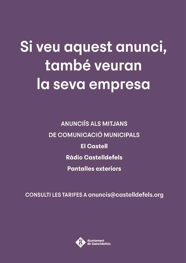 D’aquesta revista se n’editen 27.000 exemplars. Es distribueixen gratuïtament a totes les llars de Castelldefels. Si algú no la rep per la circumstància que sigui pot comunicar-ho a la Secció municipal de Comunicació i Imatge. Tel. 93 665 11 50 /elcastell@castelldefels.org