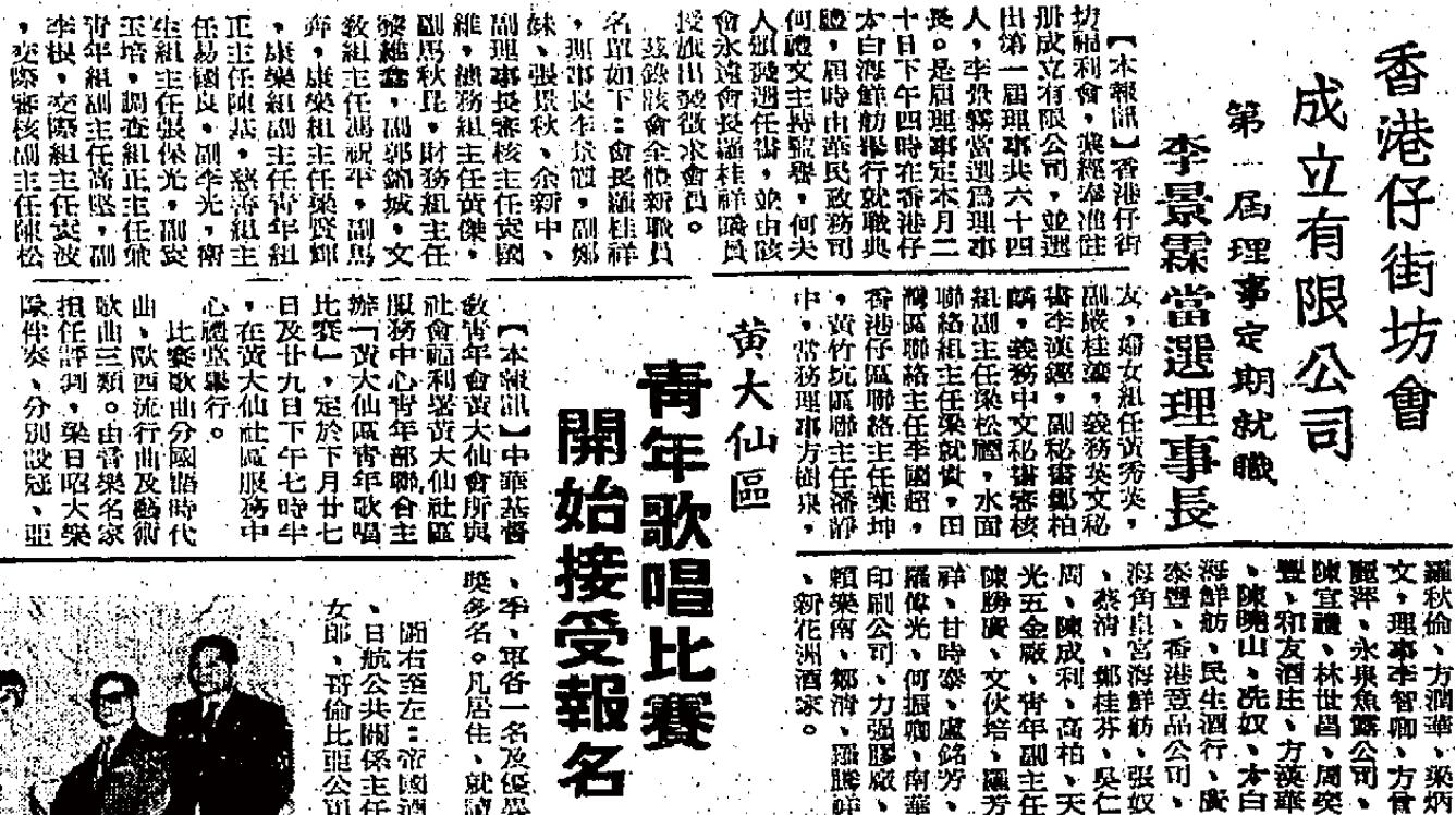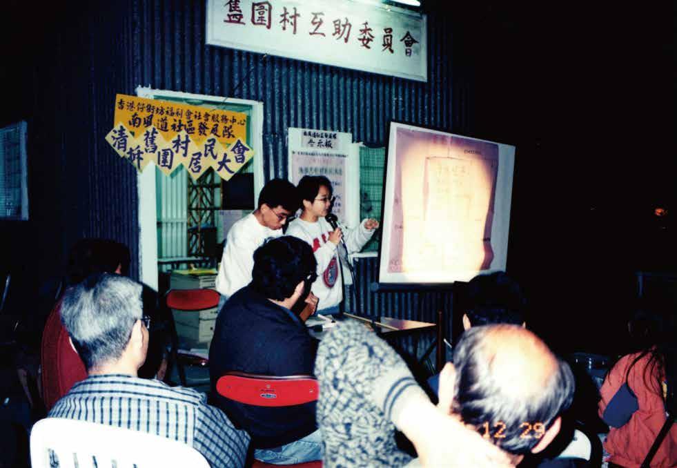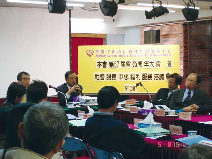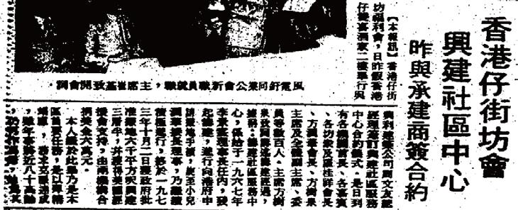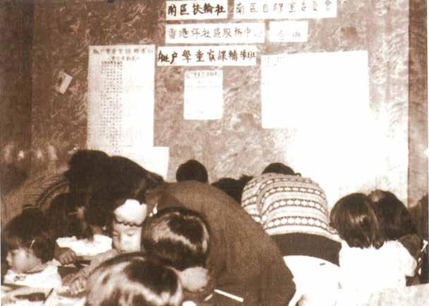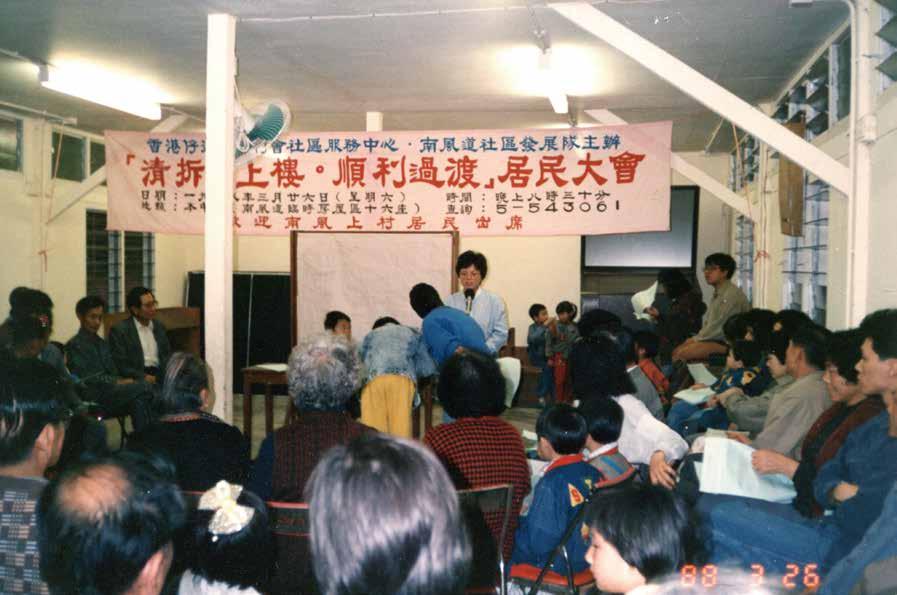 城市規劃意見,又曾組織在南區的勞工講解勞工福利、舉辦娛樂活動;甚至在1976 年,政府收回涌尾船廠,坊會協助為廠員爭取合理安置。其他街坊會如灣仔街坊福利 會亦曾經協助人口統計。