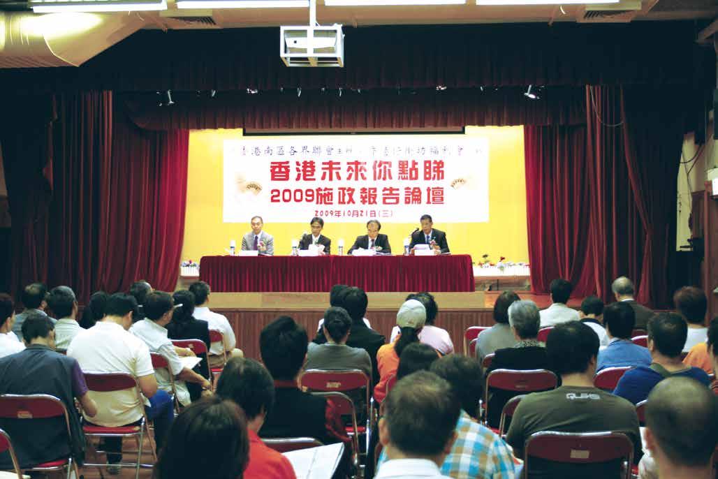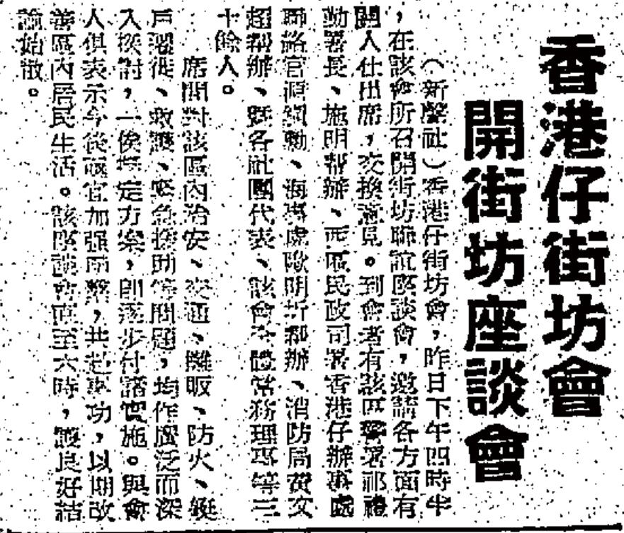 此外,街坊福利會更提供一個良好公共平台,讓居民可以討論社區發展、公共事務, 並協助政府推行政策。例如坊會便曾就南區工業發展諮詢過南區居民,並向當局提供