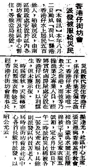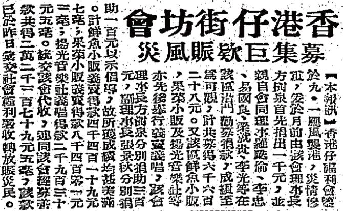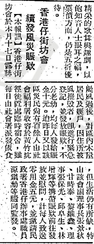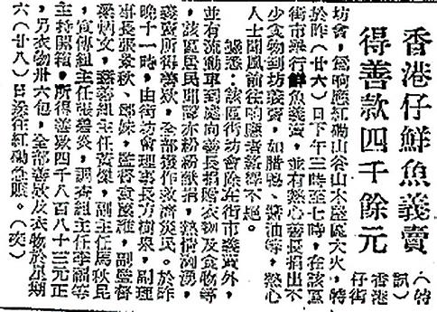 先後籌款賑濟 香港仔及石硤尾 木屋區大火災民