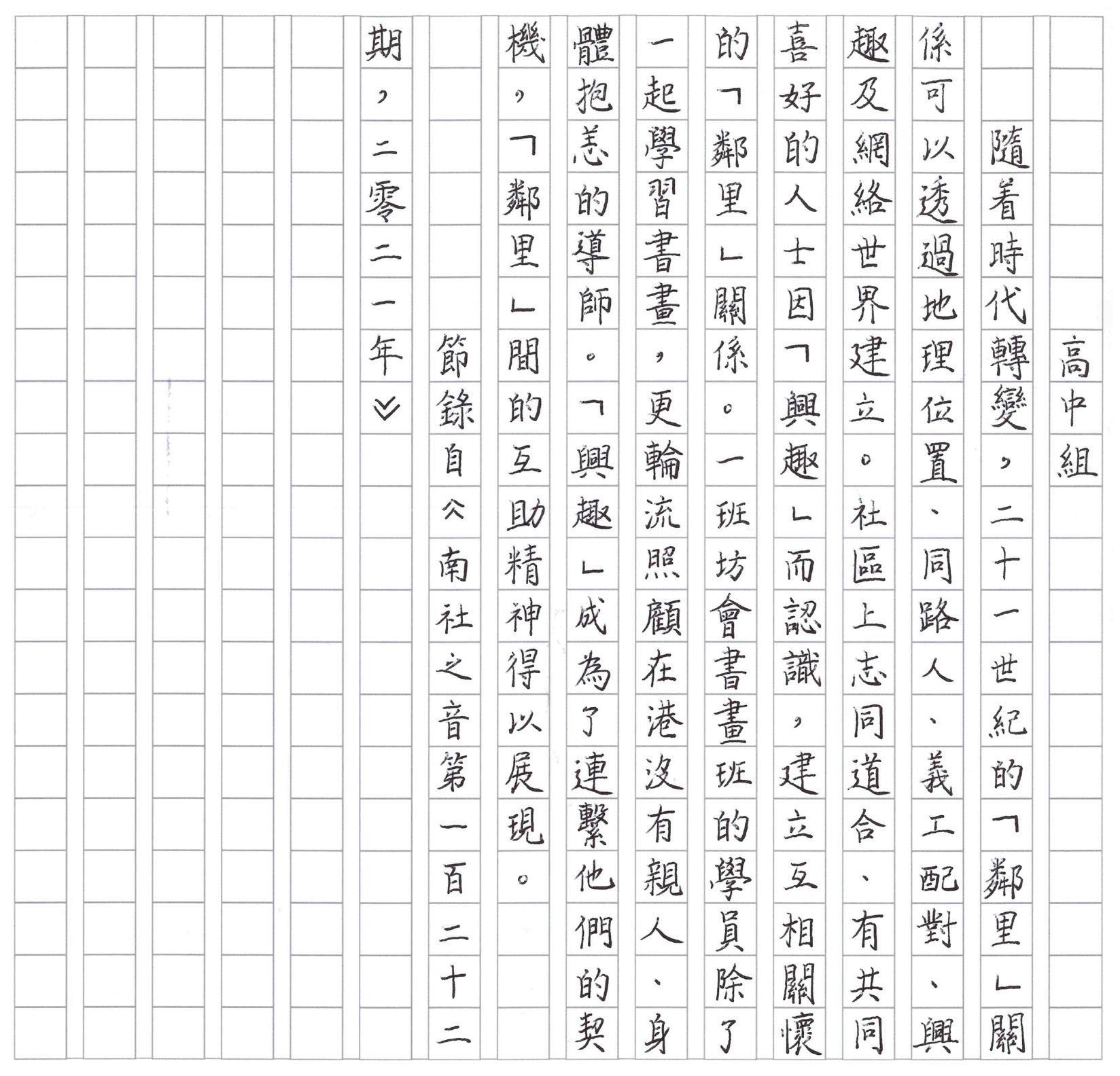 2022「舫遊.珍寶」全港原子筆中文書法比賽得獎名單