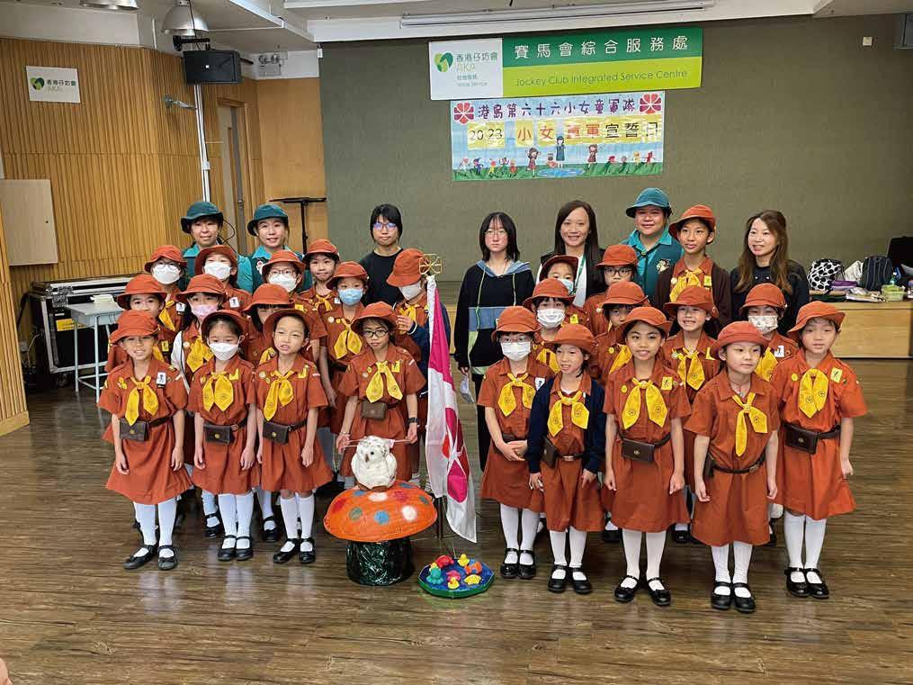 本會社區中心設有港島童軍第70旅、港島第66女童軍隊及港島第49快樂小蜜蜂隊;賽馬會綜合服務處則設 有港島第115女童軍隊及港島第66小女童軍隊。本會兒童及青少年童軍成員逾110人,每年皆會參與多項社 會服務,單在2022至2023年度便有步行籌款、設置互動攤位等。此外,童軍隊也積極協助坊會舉辦活動, 例如中心暑期活動閉幕禮、「MineSouth.童現」分享會等。