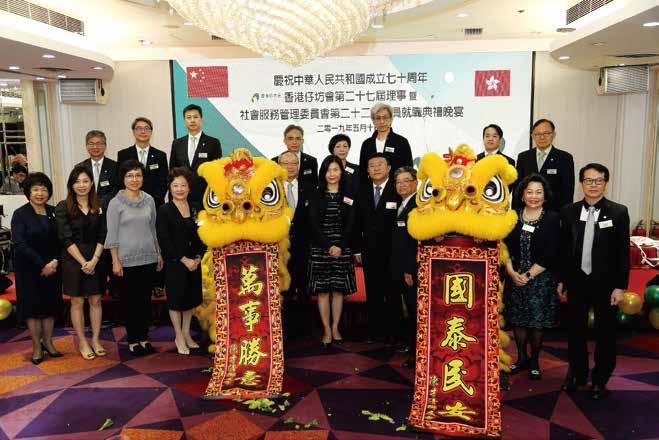 本會第27屆就職典禮晚宴 第22屆委員就職典禮晚宴已於2019年5月10日, 假香港仔富臨皇宮圓滿舉行, 當晚筵開36席,賓客如雲,場面熱鬧! 官林坤初先生、前瑪麗醫院專科護士羅偉真女士、銀行電腦資訊科技主管陸華宇先 生、黃浩強先生、香港能仁書院社會科學學院院長顏文雄教授及香港學術及職業資 歷評審局秘書處副總幹事(職業專才教育)王景兒博士成為今屆名譽顧問,人才濟 濟。深信在各方人士之投入付出及緊密合作下,本會定能為坊眾提供更多優質服 本會個別理事委員的特質及機構服務內容,令台上台下打成一片;宴會 最後在歡愉氣氛中圓滿結束! 服務 經已圓滿舉行 9
