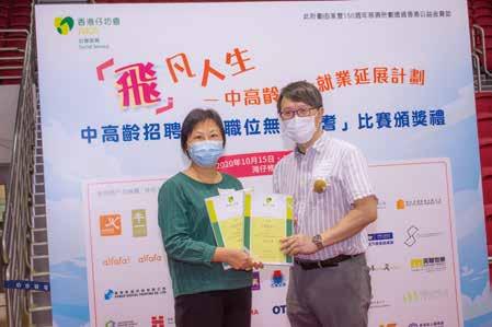 2020-2021年度 為發掘就業市場上更多的工作機會,「『飛』凡人生―中高齡人士就 業延展計劃」於2020年6月至9月,舉辦了「職位無限『耆』―中高齡人 士職位空缺創作比賽」。比賽邀請社會各界按中高齡人士的能力和需要, 提議適合他們但市場上欠缺的職位。比賽反應非常熱烈,共收到140份參賽作品。 經過評審團的意見及超過300位50歲以上人士的網上投票,選出13份得獎作品,部分獎項如下: 踏入2020年初,2019冠狀病毒病肆虐,威脅市民健康之餘,亦同時衝擊香港經濟,影響各行各業,令失業和就 業不足問題惡化,為有關人士提供適切支援,實刻不容緩。為有效回應疫情下驟增的服務需要和就業問題,本會 2020-2021年度的籌款目的及活動項目亦集中支援相關社群: 餸菜代購員 協助有需要人士代購餸菜,時間、地點可彈性處理。相信 買餸對於50+人士來說是駕輕就熟的事,但對於在家照顧幼兒、行動不便、 有需要人士來說,有時到街市買餸真的很多不便。 伴行大使 伴行大使陪同有需要的長者或殘疾人士外出到嚮往的景點遊 玩,甚或舊地重遊,讓他們身心得到舒展。全程提供專車接送服務。 線上管家 線上管家跟客人定期溝通,了解他們的家居需要(如預備飯 餸、修理電器等),並記錄客人的喜好及生活習慣,繼而進行管理工作及在 線上培訓家傭。 本計劃相信,得獎的職位空缺既能發揮中高齡人士的能力,亦能配合僱主 的需要。期望透過此比賽,向僱主提議更多可行的職位空缺,並引起社會 大眾對中高齡人士就業的關注。 得獎作品詳情,請參閱:https://job50.hk/competition_result/ 得獎者接受由評審Buddy Town 創辦人文瑞祥先生(右)頒發的 評審大獎。 3位評審獲贈由計劃參加者親手 鈎織的紀念品。 於換幣龍捐款達$100,可憑收據到本會轄下單位領取收據作扣稅用; 及1套3款由藝人蔡一智先生、本港插畫師及機構義工設計之心意咭。 服務 籌募經費以支援低收入或失業人士及 有特別需要之家庭;及 籌募本會屬下社會服務單位不敷之經費。 舉辦日期 籌款項目 2020年10月至2021年3月 慈善粵曲金曲演唱會/網上卡拉OK暨才藝匯演 2020年10月至11月 愛心券 (本年度新增網上購買平台) 2020年11月至2021年3月 愛心義賣 ·分網上認購及單位內購買 ·每月主題義賣物品,如生活百貨(糧油/米/粵式烹調乾貨)、懷舊物品(黑膠唱片)、防疫用品 及特色手工藝等。 「存『零』行動」 ·歡迎透過全港超過70個(南區4點)換幣龍零錢兌換服務站之慈善專項版面,捐出零錢予本會。 2021年3月 南區景致‧慈善線上行2021 誠盼各位鼎力支持,祝願大家福有攸歸! 70萬元 籌款目的 籌款目標 查詢電話 3550 5567 吳翠嫻小姐 「 用心關 懷.以心連繫 」 8 網上最受50+人士歡迎 冠 網上最受50+人士歡迎 亞 網上最受50+人士歡迎 季 慈善籌款