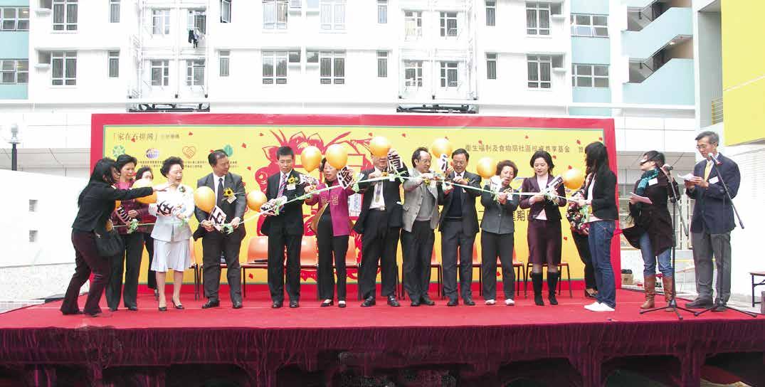 坊會與3間位於石排灣邨的社會服務機構合作推行 「家在石排灣計劃」。(單張由羅桂蘭女士提供) 黃竹坑邨清拆前,居民出席盤菜宴互相道別。 當年石排灣邨將近入伙之際,仍未有供水,時任坊會理 事長陳理誠先生馬上聯絡水務處跟進,解決了整個屋邨 的供水問題。正是這10多年前的工作經驗,讓兩位感 受到坊會對居民的重視及用心,因此,兩位在退休後也 義不容辭地加入坊會的管理委員會,繼續與坊會同行。 隨着黃竹坑邨重建,坊會開設的黃竹坑長者中心亦重組 為南區長者地區中心,為年長居民提供更完善的服務。 3