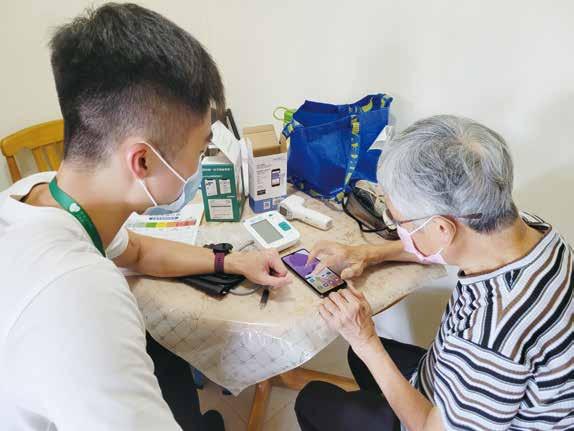 專題報導 香港仔坊會 科技發展日新月異,其應用亦無處不在; 透過結合嶄新樂齡科技與安老服務,除有效支 在疫情反複下,樂齡科技更有助支援長者居家安老和與社會接軌,實在是不可或缺。如何幫助長者們縮減數碼洪 溝,實在值得深思探究。本會深明長者在應用科技產品的局限和難處,故早於2017年起已開始關注及積極參與推動 科技結合長者服務,諸如推行由香港賽馬會慈善信託基金捐助之「賽馬會『e健樂』電子健康管理計劃」,讓長者運 用電子科技進行自我健康管理。又透過申請樂齡及康復創科應用基金購置樂齡科技器材以提供嶄新的長者服務。此 外,本會更於2019年與西班牙馬德里理工大學轄下之LifeSTech研究團隊簽訂意向書,協議以歐盟其下「積極健康樂 頤年計劃」(ACTIVAGE)的名義共同研究及尋找合作機會,日後共同推動以科技改善長者生活質素的工作,並把共同 研發之成果應用於本會長者服務及未來發展。