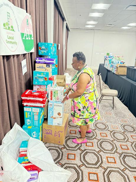 Ourmembersgenerouslyansweredthecallfordonations.ThroughanAmazonWishListanddirect contributions,weprovidedover3,000essentialitems,includingdiapers,wipes,andsanitarynapkins,alo with$1,303inmonetarygifts.Oureffortsareatestamenttoourcommitmenttosupportingmothersa childreninneed.