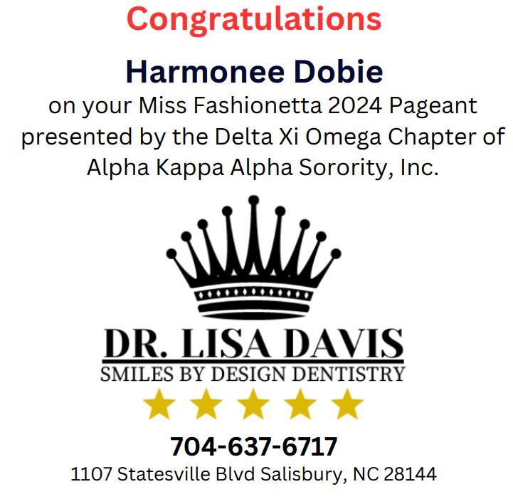 On behalf of Alpha Kappa Alpha Sorority, Incorporated®, Delta Xi Omega Chapter of Salisbury, NC, I wish to thank the parents of the Fashionetta Participants and Escorts for supporting this enriching experience.