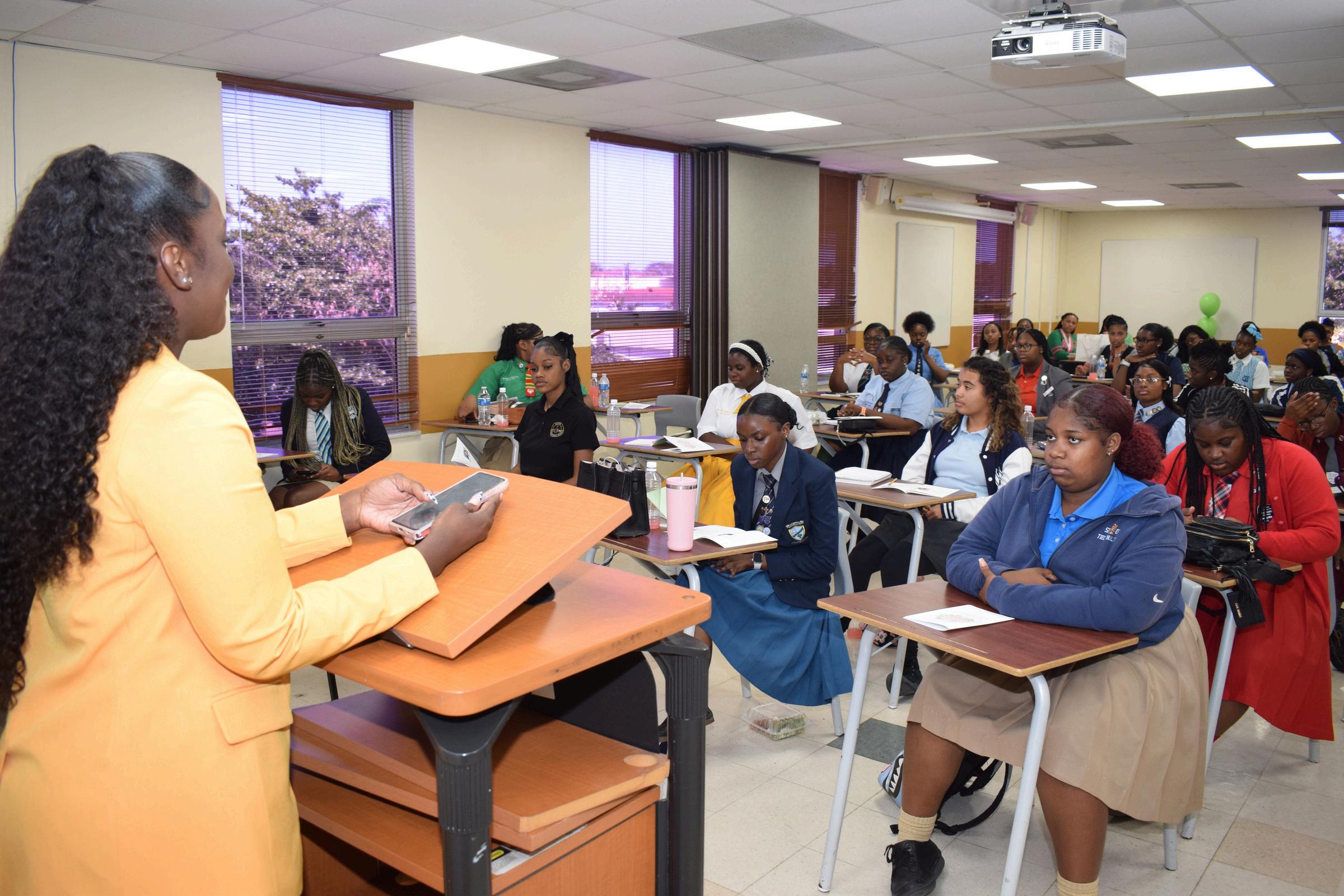 In preparation for the mock parliament, members participated in virtual health sessions led by distinguished women in healthcare, including Dr. Eldonna Boisson (PAHO/WHO Country Representative for The Bahamas and Turks and Caicos Islands), Dr. Keva Thompson (Deputy Managing Director of the Public Hospital Authority), CC LaFleur (Senior Manager of Human Resources of the National Health Insurance Authority), and Dr. Brittney Jones (Technical Of d e for Th Is ants' un str .