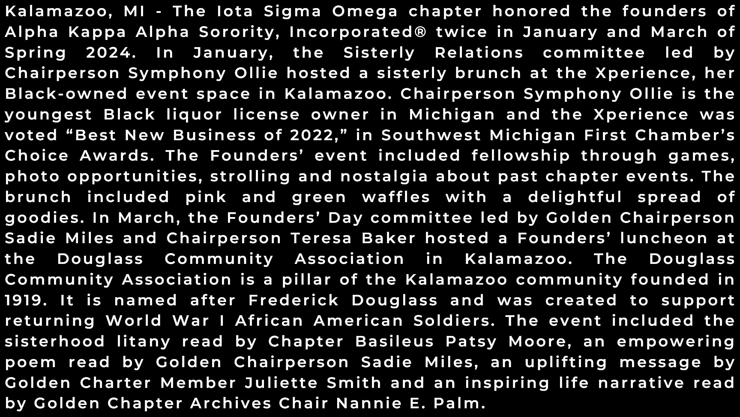 Source: Launching New Dimensions of History in The Great Lakes Region of Alpha Kappa Alpha Sorority 2014 to 2018: A Compendium – Toni S. Kendrick, Great Lakes Regional Director and Octavia Walters Cabey, Editor – updated 2024