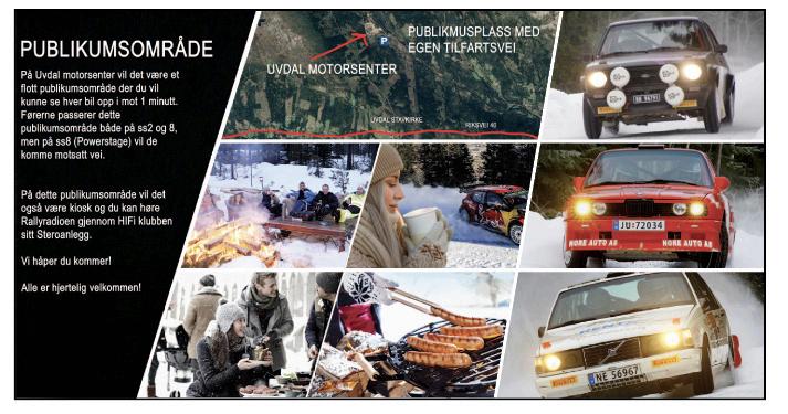 NMK Nore og Uvdal håper alle som tar turen ut i skogen for å se på rally får en opplevelsesrik dag. Mange har med seg mat og drikke og koser seg på sin post. Dette er noe av grunnen til at rallysporten har blitt så populær blant publikum, kosen og det sosiale livet på skogen.