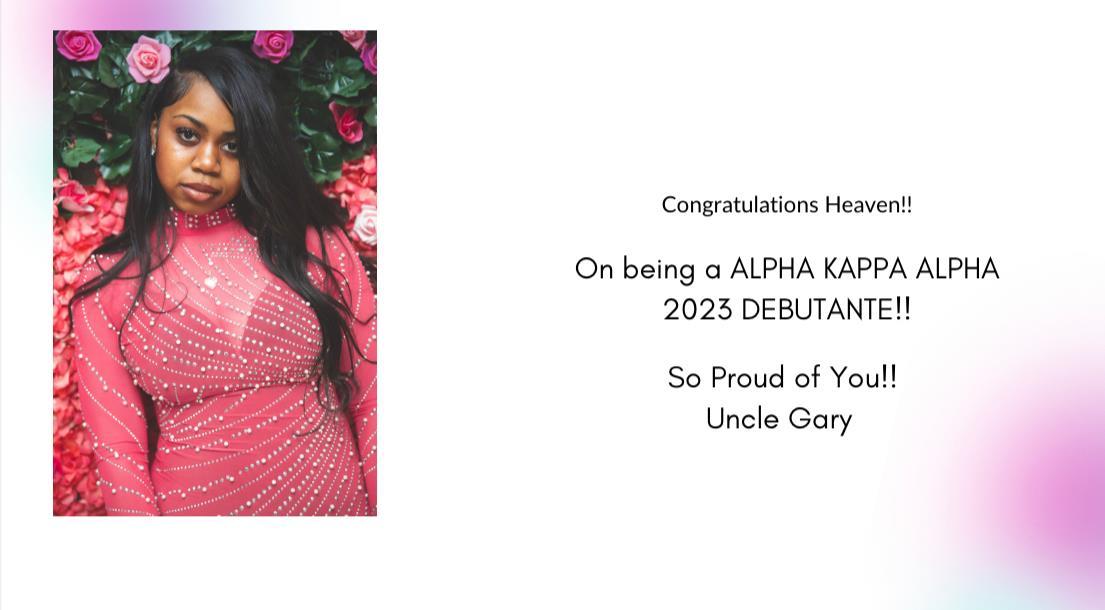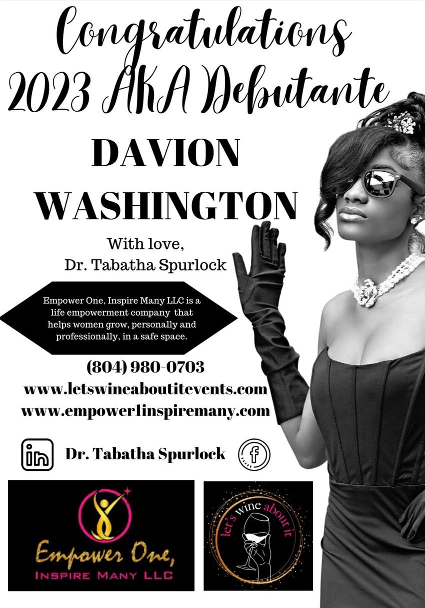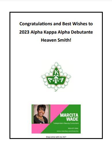 On behalf of the members of Alpha Kappa Alpha Sorority, Incorporated® Upsilon Omega Chapter, I want extend greetings to the families and friends of our 2023 Debutantes, as well as, the greater Richmond community.