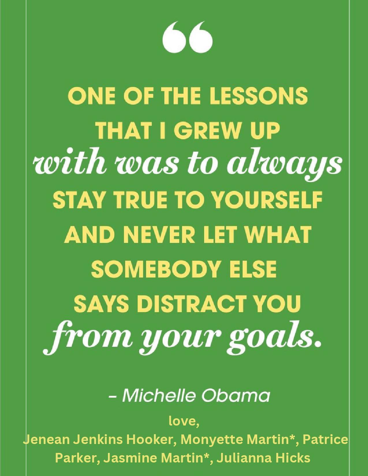 Continue to work hard, and always treat others with respect and value those in your life, so that your can earn good will to move forward in this challenging world. Set your goals, and be willing to work hard to achieve them. Dream big, and let no one discourage you from following those dreams.