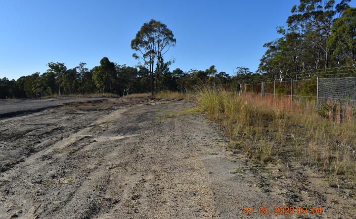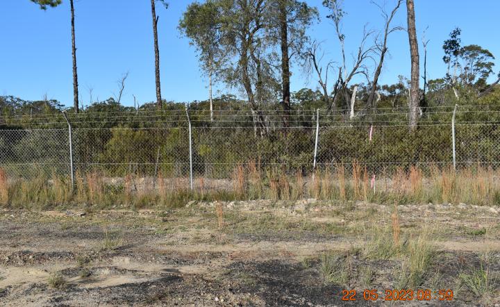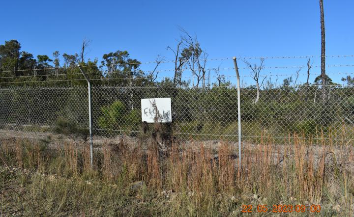 General view of the east boundary fence on Station Road, adjacent to the kilo pole.