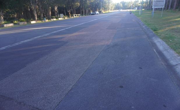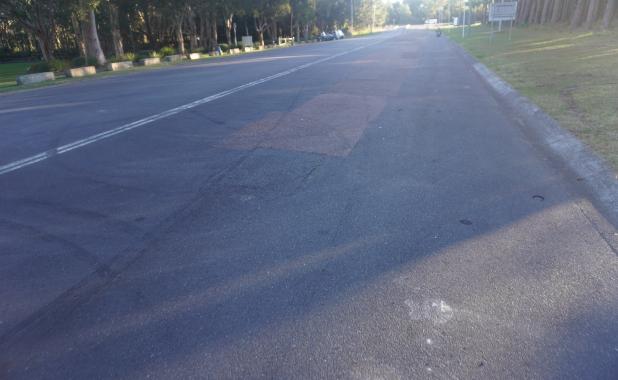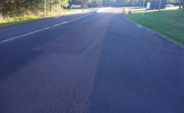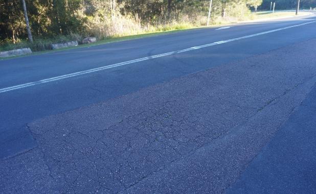 Patching and slight cracking in the north side of the roadway on Station Road, opposite Koala Park.