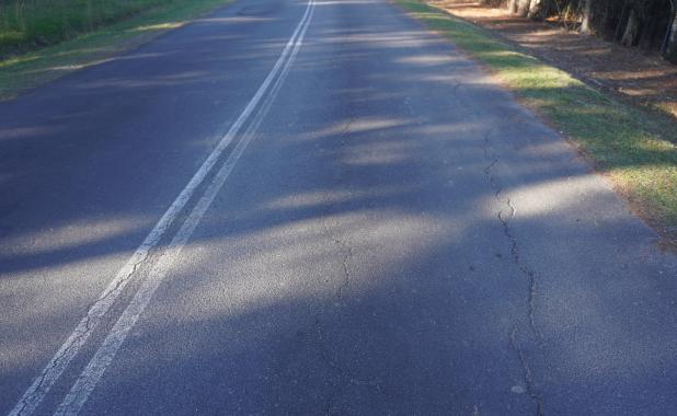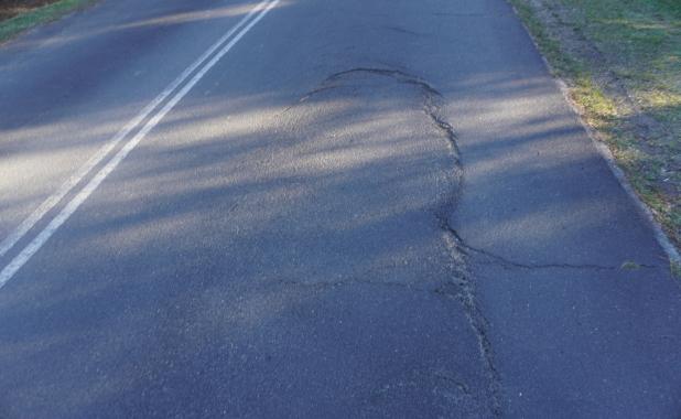 Alligator cracking in the north side of the roadway on Station Road, opposite Koala Park.