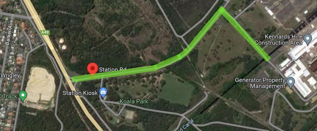 General view of the north side of the roadway on Station Road, opposite Koala Park.