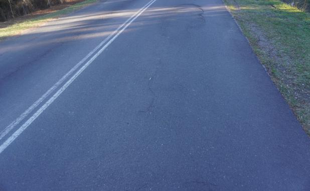 Alligator cracking and patching in the north side of the roadway on Station Road, opposite Koala Park.
