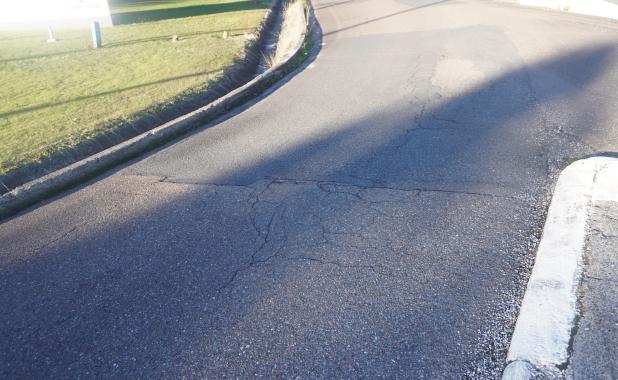 Slight cracking in the north side of the roadway on Station Road, on the west side of the entrance gate.