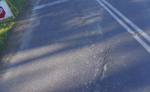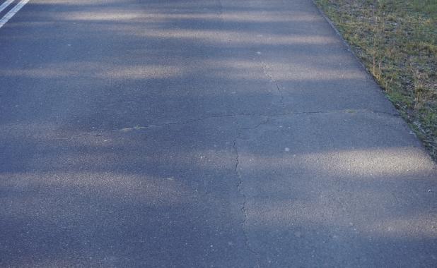 Slight cracking in the south side of the roadway on Station Road, outside Koala Park Golf Course.