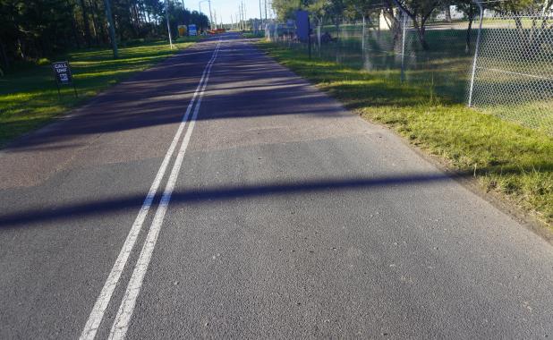 Alligator cracking in the north side of the roadway on Station Road, on the west side of the entrance gate.
