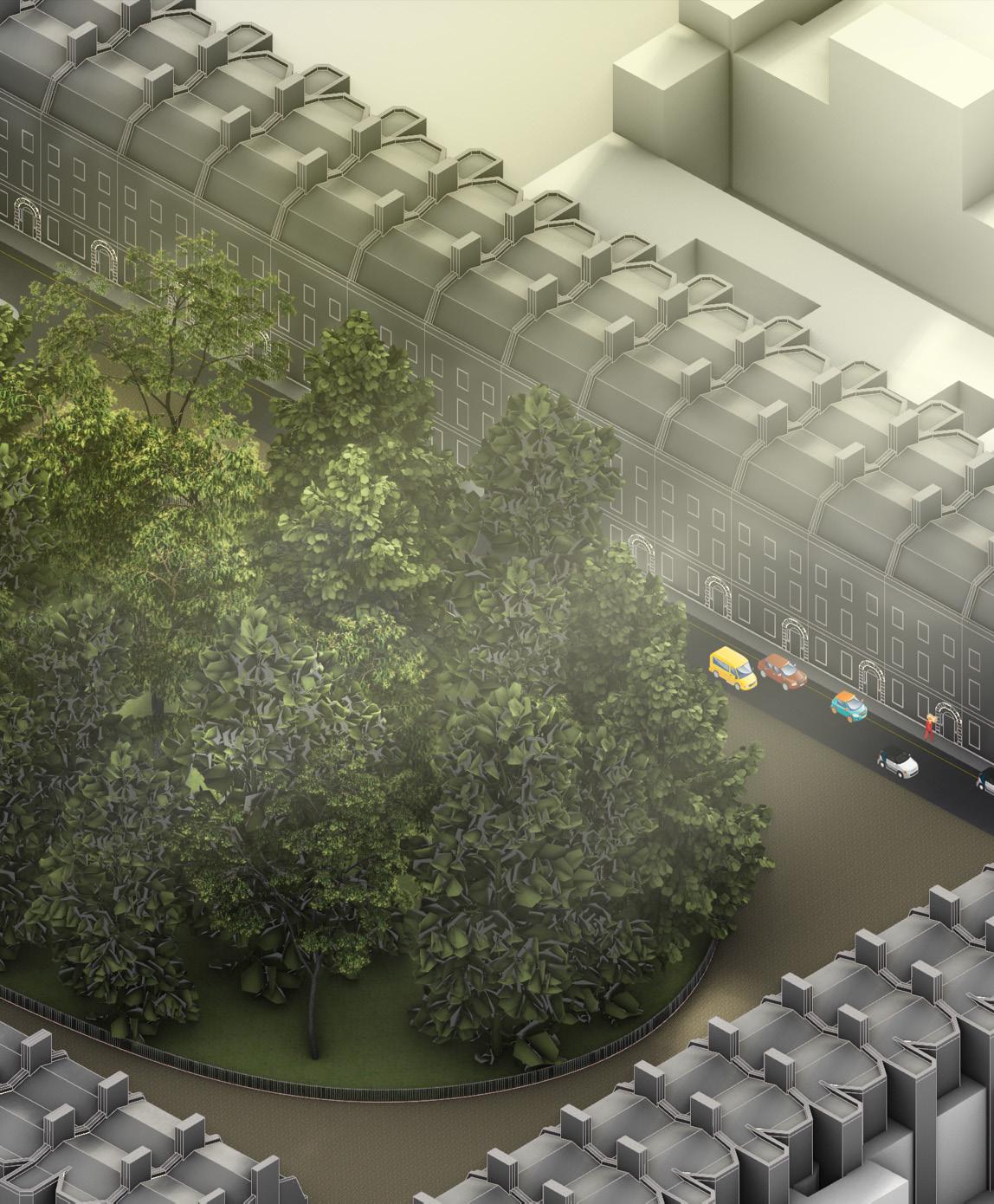 Given the site at Bedford Square Park, the brief entails designing an arboretum specifically tailored to house baobabs. This project aims to create a harmonious environment where these iconic trees can thrive while providing a serene and educational experience for visitors. This project also serves as a focal point for ecological awareness and biodiversity conservation in the heart of the city.
