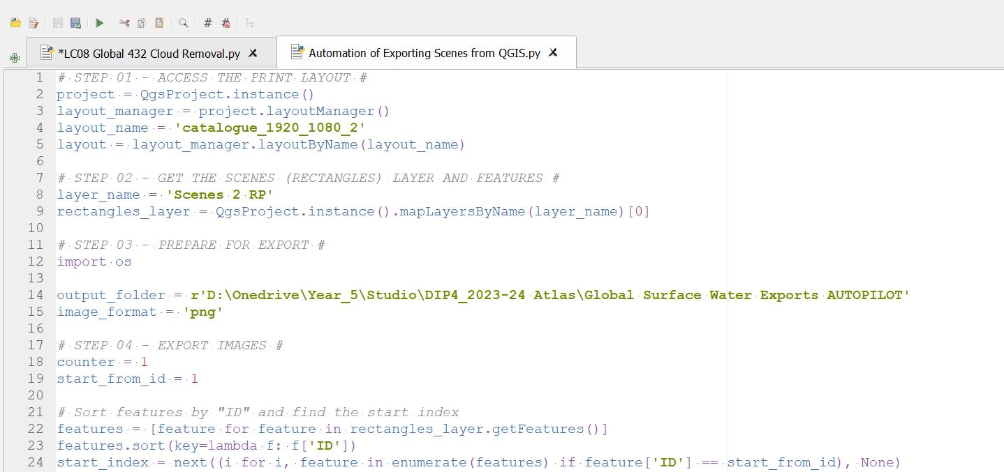 This method is crucial as it allows for consistent and unbiased access to the data across all regions, maintaining the integrity of the quantification process. By automating this step, the potential for human error is minimized, and the efficiency of the process is significantly enhanced. The script’s ability to interact seamlessly with the Global Surface Water dataset ensures that all available data for the chosen timeframe is included in the analysis, thereby ensuring that no area of interest is omitted due to manual oversight.