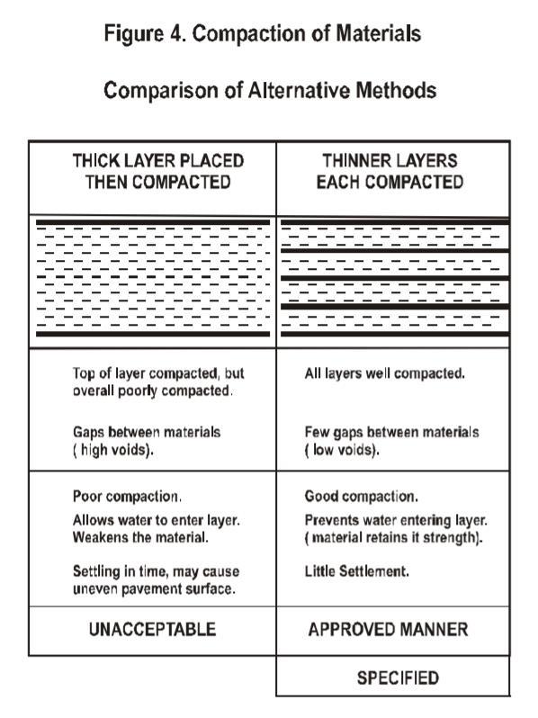 On large contracts the bituminous materials are manufactured, transported and placed by plant. On smaller contracts, more labour-intensive methods are generally used. In either case due to the high cost of the materials, it is vital that the works are undertaken to the specified quality. Therefore, a job mix should be undertaken and the asphalt should be to the thickness and compaction standards as specified.