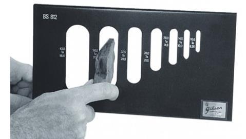 2. To separate elongated materials, each fraction is then gauged individually for length in the length gauge.