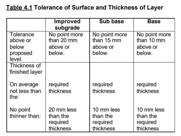 After compaction the surface of the road should appear to be impervious and to be free from any dragging cracks or other surface blemishes. The surface should also be checked at intervals not exceeding 10 m by a 3m straight edge and a crown template. The variation between two contacts should not exceed 5 millimetres.