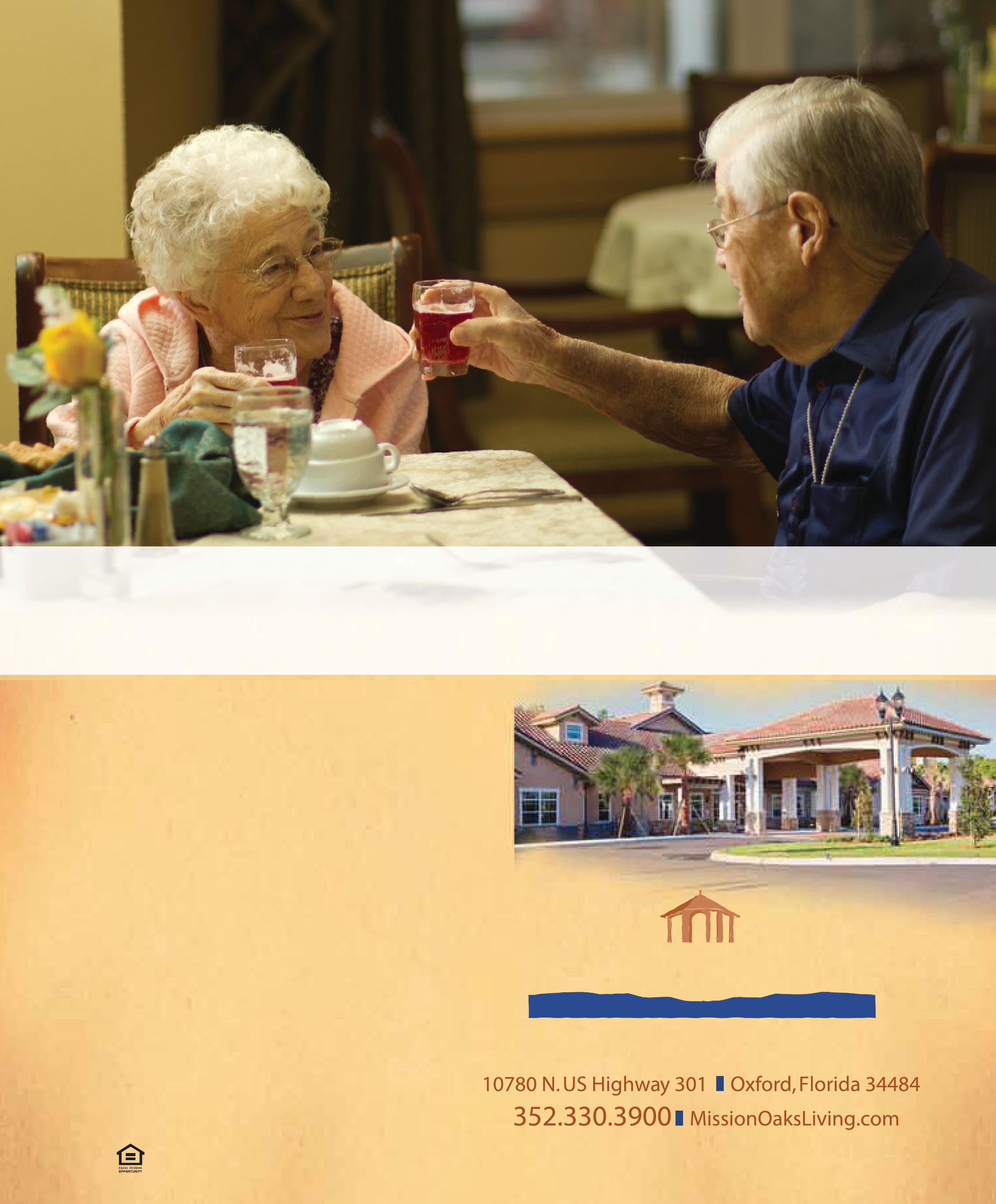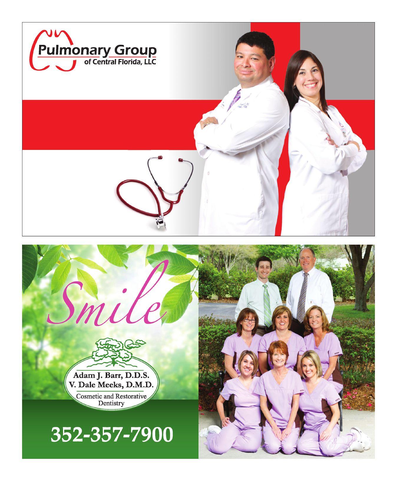 Specializing in Pulmonary and Critical Care Exclusively Offering Pulmonary Rehab with an Experienced Respiratory Therapist Now accepting new patients. Most insurances accepted Leesburg Location: 1038 W. North Blvd., Ste. 102 (Across from Leesburg Marketplace on North Blvd.) Villages Location: 1400 US Hwy. 441 Bldg. 900 Ste. 906 352.315.1627 www.pg-cf.com • Intensive and ICU Management • COPD • Asthma • Diseases of the Lungs • Sleep Disorders 980 Mt. Homer Rd. • Eustis, FL 32726 www.adambarrdds.com We Love to See You