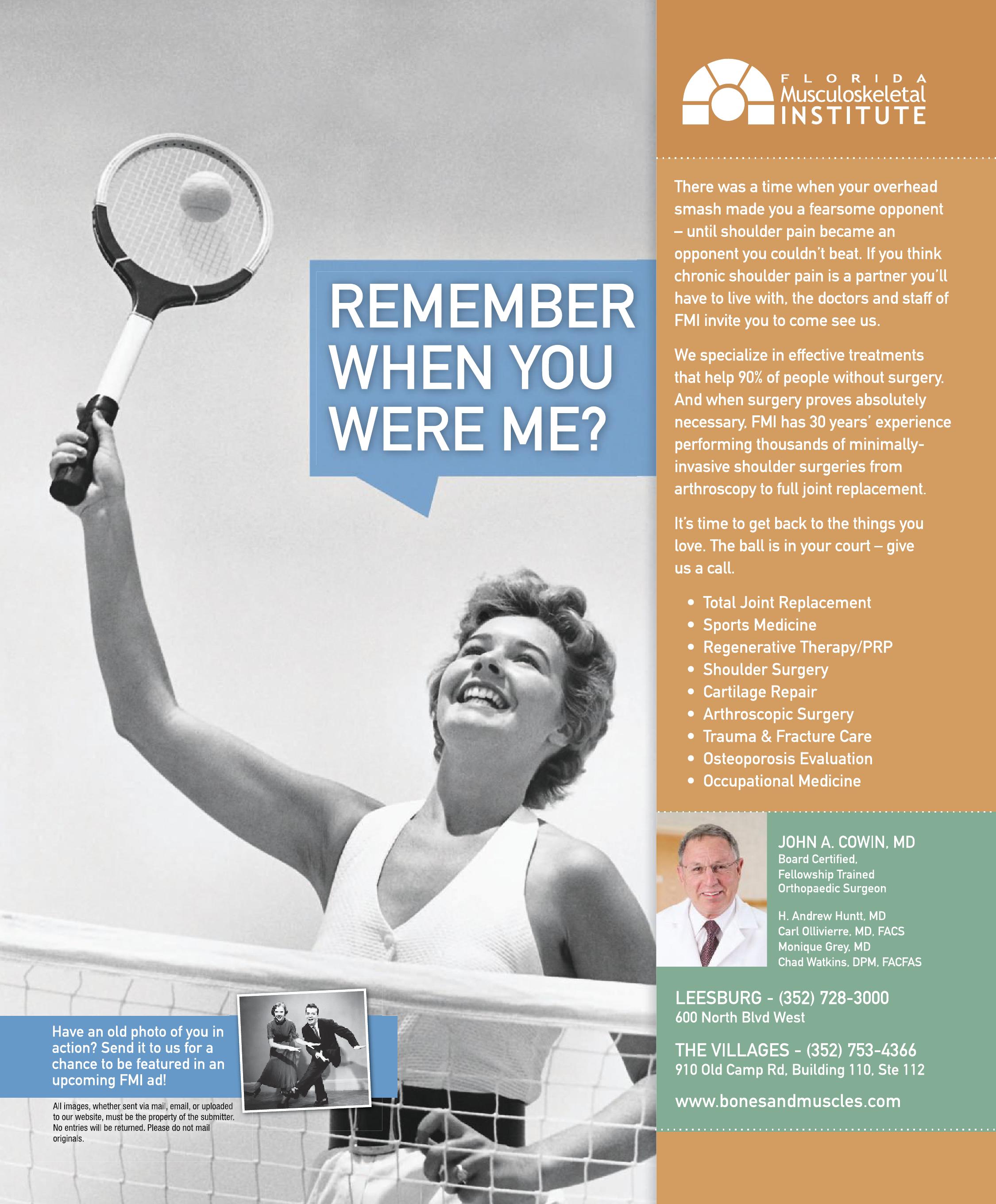CONFUSED ABOUT NUTRITIONAL TRUTH? Truthis...thereis no‘onesizefitsall’answer. 352.259.5190 // www.totalnutritionandtherapeutics.com 1585 Santa Barbara Blvd., Suite B, THE VILLAGES “Proper and successful nutrition starts with basic core foods and then is individualized to manyother factors.” -Lori Esarey,ARNP and Owner of Total Nutrition and Therapeutics Get the facts and end ‘Nutrition Frustration’ Getontheroadtowellnesstoday![ [ Lor LoriE i E Esar saar r s ey ey,MS MS,A A ,A , RNP RNP-GC GC G -GCS M S SMast asst a ers er in n nur ur rnu sin sin singg,g,ffafam m am a il l ily y p pr t ct act a i ice ce t at a S US U i F Fi n nn n tr utr ut u itition on and a annd nd met metabo abo abbolic l liic ic me medic dic i ine n an andp p d p d purs urs r i uin in n u gf f g f g ell l ellows owws owship hip iphi in in n nt antiiaiagig ing i n anddr d r t st est a ra ora or o ti tiv t m e di edi e i in n cin ci c e e. Your Health, Your Future. 352.728.6886 www.chapmanhealthgroup.com Chiropractic Massage Therapy Rehabilitation Nutrition Now Accepting New Patients Expanded Hours Most Major Insurances Accepted 32749 Radio Road • Leesburg, FL 34748-3901 Across from the Lake Square Mall CHAPMAN HEALTH GROUP TODD CHAPMAN, DC AKERSMEDIAGROUP.COM // 93