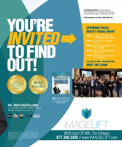UPCOMING FACIAL BEAUTY SOCIAL MIXER JUNE 5 CITRUS HILLS COUNTRY CLUB SEMINAR, HERNANDO JUNE 18 HILTON HOTEL SEMINAR, OCALA JUNE 25 WATERFRONT INN SEMINAR, THE VILLAGES JULY 23 WATERFRONT INN SEMINAR, THE VILLAGES JULY 30 COUNTRY CLUB OF MOUNT DORA SEMINAR CALL NOW TO RSVP - LIMITED SEATING