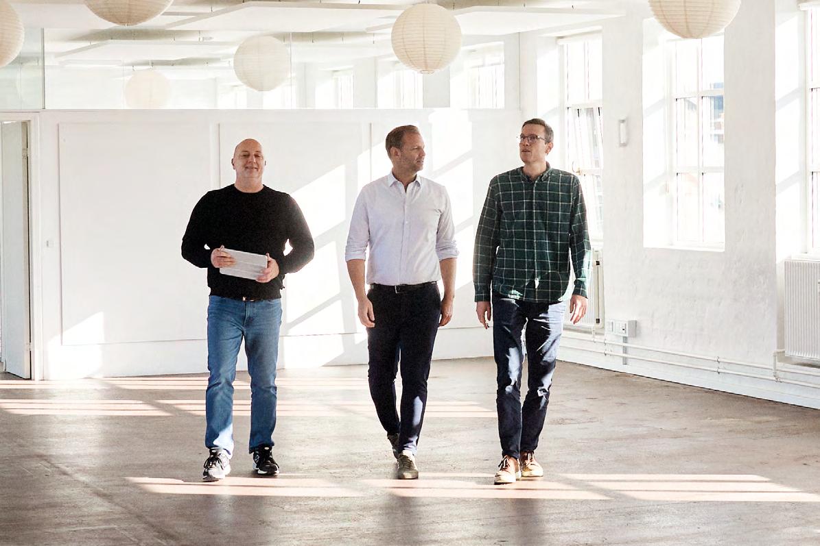 Når et lejemål skal fornyes, begynder arbejdet på stedet. Her vurderer Jacob Broomé Christiansen, driftschef, Thomas Israelsen, chef for Ejendomsrenovering, og Michael Marseen, projektleder, rammerne for renoveringen af et erhvervslejemål i København NV.