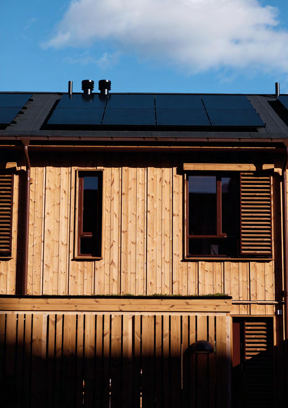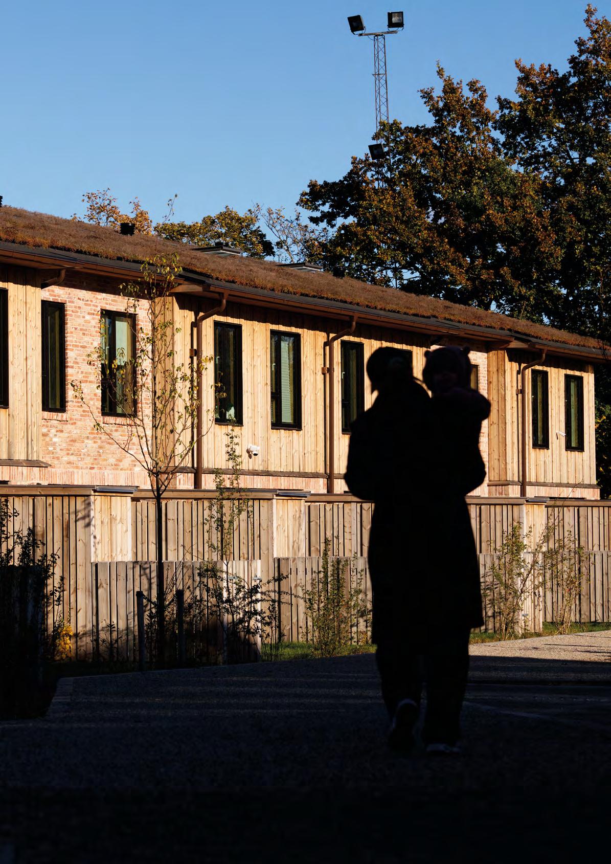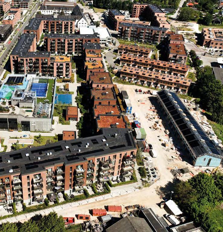 og fællesskaber. Afslutningen på området markerer derfor ikke et punktum, men nærmere et afsæt. For vi tager erfaringerne herfra med ind i vores kommende projekter, f.eks. vores fælleshus i overskudstræ i Hvidovre og nye hybridbyggerier i træ og beton i Glostrup. Håndgribelige eksempler på vores vilje til at gøre tingene anderledes.