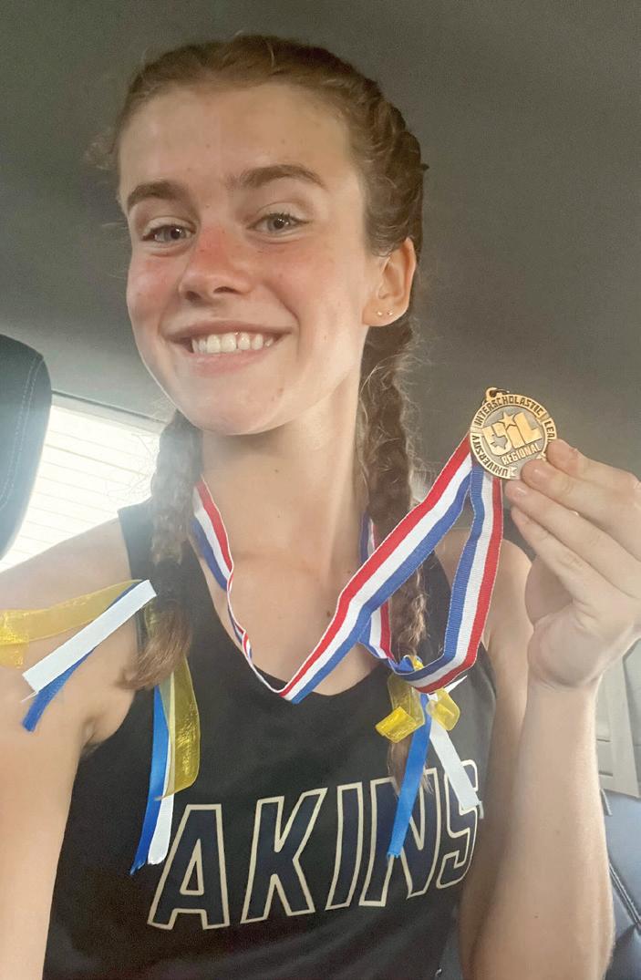 Ava Linnell holds her Regional Medal after placing 7th, advancing to State.