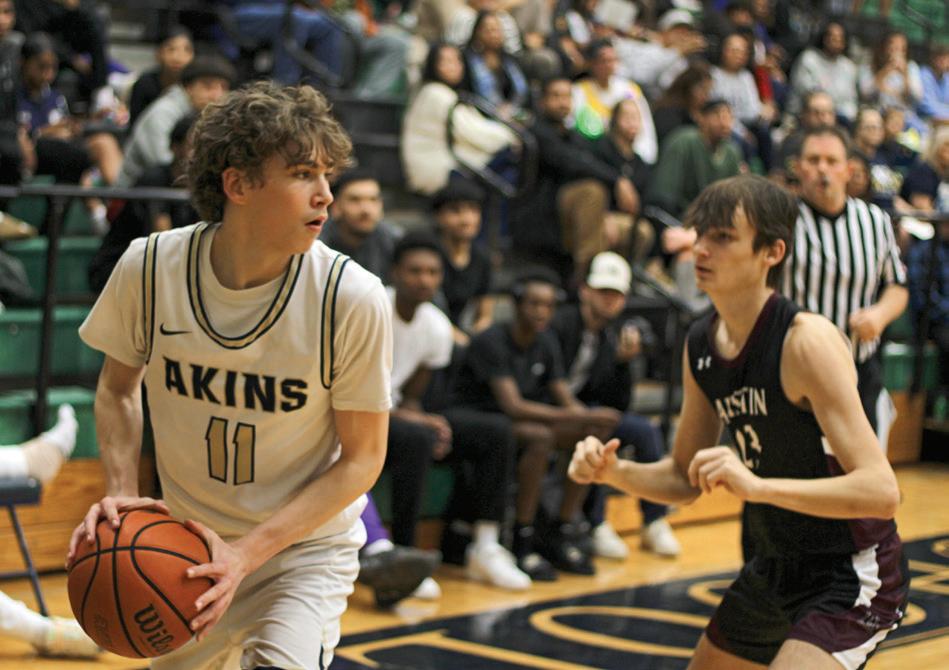 Sophomore Caleb Parkhill shooting guard for the Akins basketball team said he enjoys getting to play for the varsity basketball team.