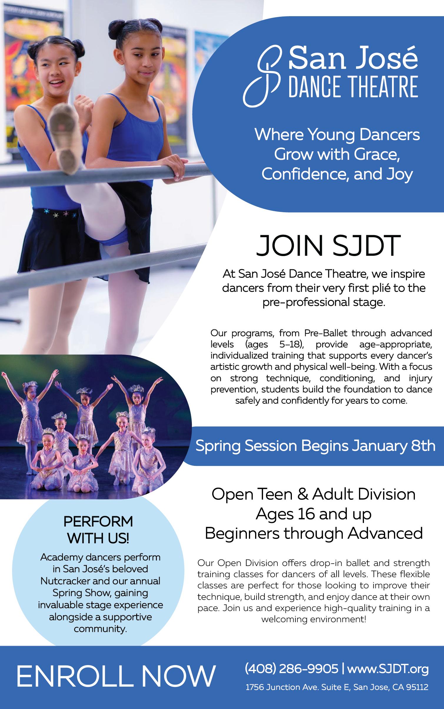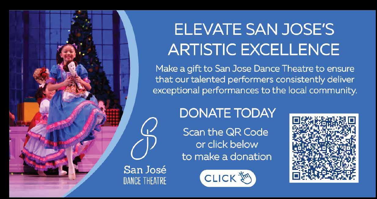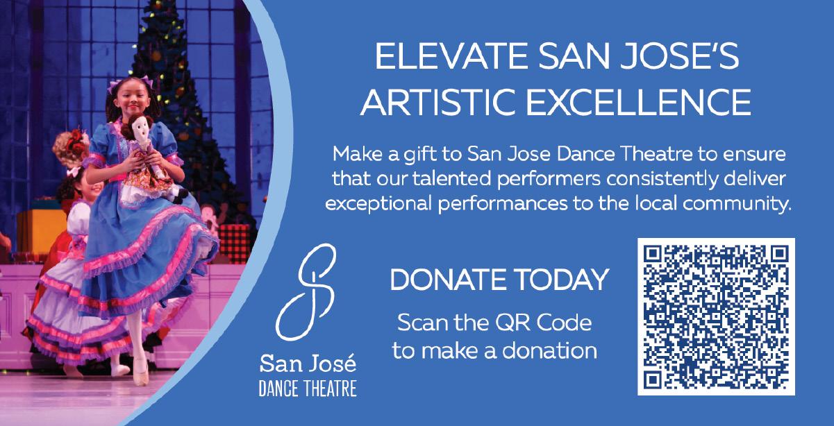 As we celebrate this milestone season, I humbly ask you to consider supporting the future of San Jose Dance Theatre. As a nonproft, we rely on the generosity of our community to continue offering world-class productions, training opportunities, outreach programs, and the kind of artistic experiences that shape young lives. Your donation—of any amount—helps ensure that this treasured holiday tradition continues to shine for the next generation of dancers and dreamers.