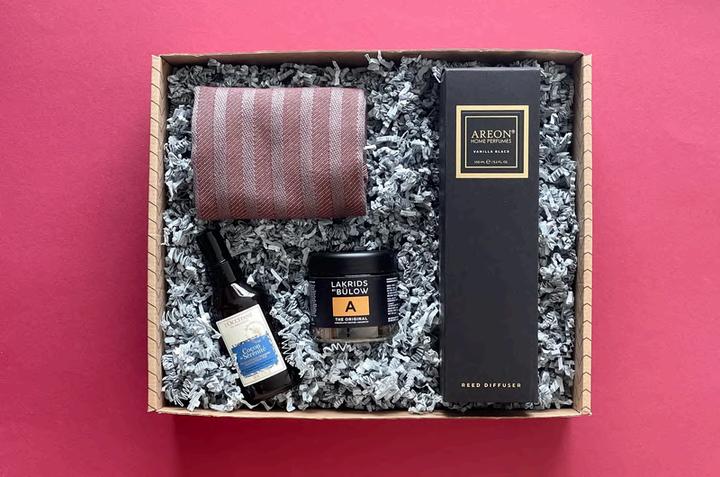 Vanilla Black ilmstangir frá Areon. Koddasprey frá L ´occitane Ihanna Home viskastykki Súkkulaðilakkrís frá Johan Bülow.