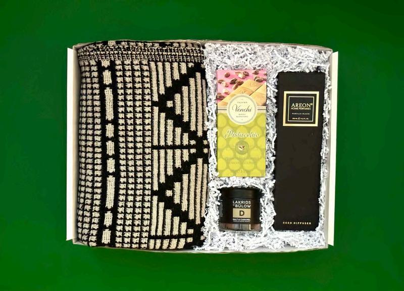 Baron Del Ley rauðvín Sulta frá Helvítis kokkinum Gjafaaskja með súkkulaði konfekti frá Venchi Kex með ólífuolíu og sjávarsalti frá The Fine Cheese Company. Grænt pestó frá Nicholas Vahé. Paté með sólþurrkuðum tómötum frá Olifa Pistasíukrem frá Gridelli Grænar ólífur frá I Love Snacks