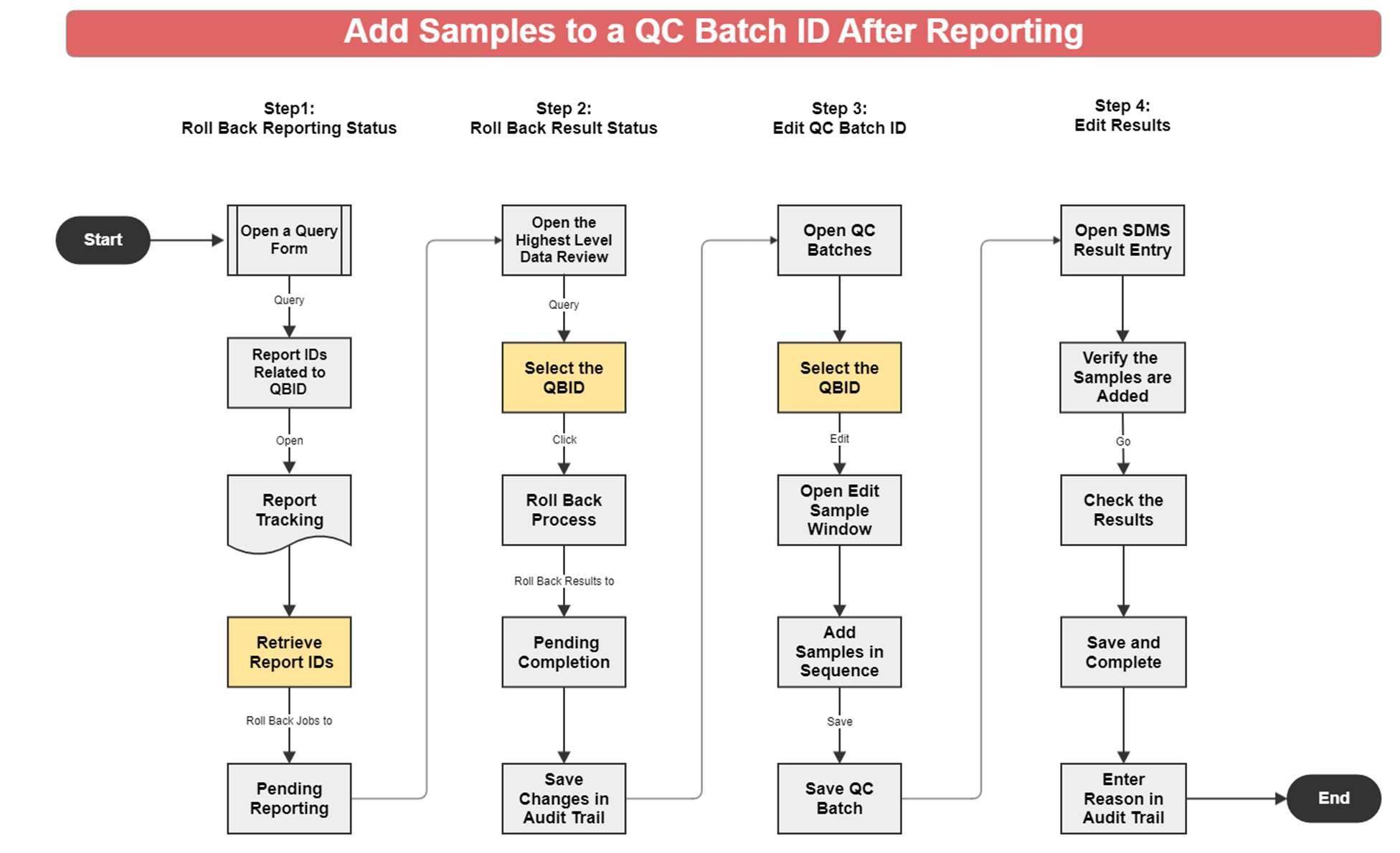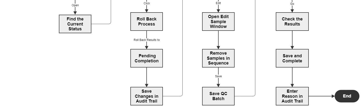 1. The target QC Batch ID must be under thestatus of ‘Pending Completion’. Therefore, rollback thebatch status to ‘Pending Completion’ from one of the Data Review processes, and record the changes in the Audit Trail.
