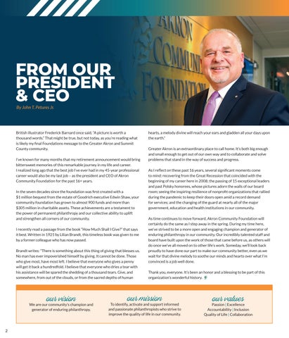 British illustrator Frederick Barnard once said, “A picture is worth a thousand words.” That might be true, but not today, as you’re reading what is likely my final Foundations message to the Greater Akron and Summit County community.