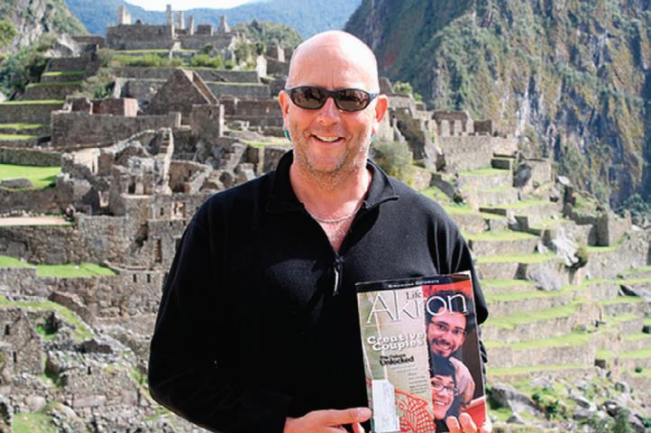 Please find attached a photo of me in front of Machu Picchu in Peru. The photo was taken on the morning of May 28. I was the only hiker from Akron (and Ohio) in my group of 10 friends from around the United States who gathered for this four-day, 40-kilometer hike on the Inca Trail. We climbed as high as 14,000 feet. It was my pleasure to insist on a photo with your fine magazine at this historic “Wonder of the World.”