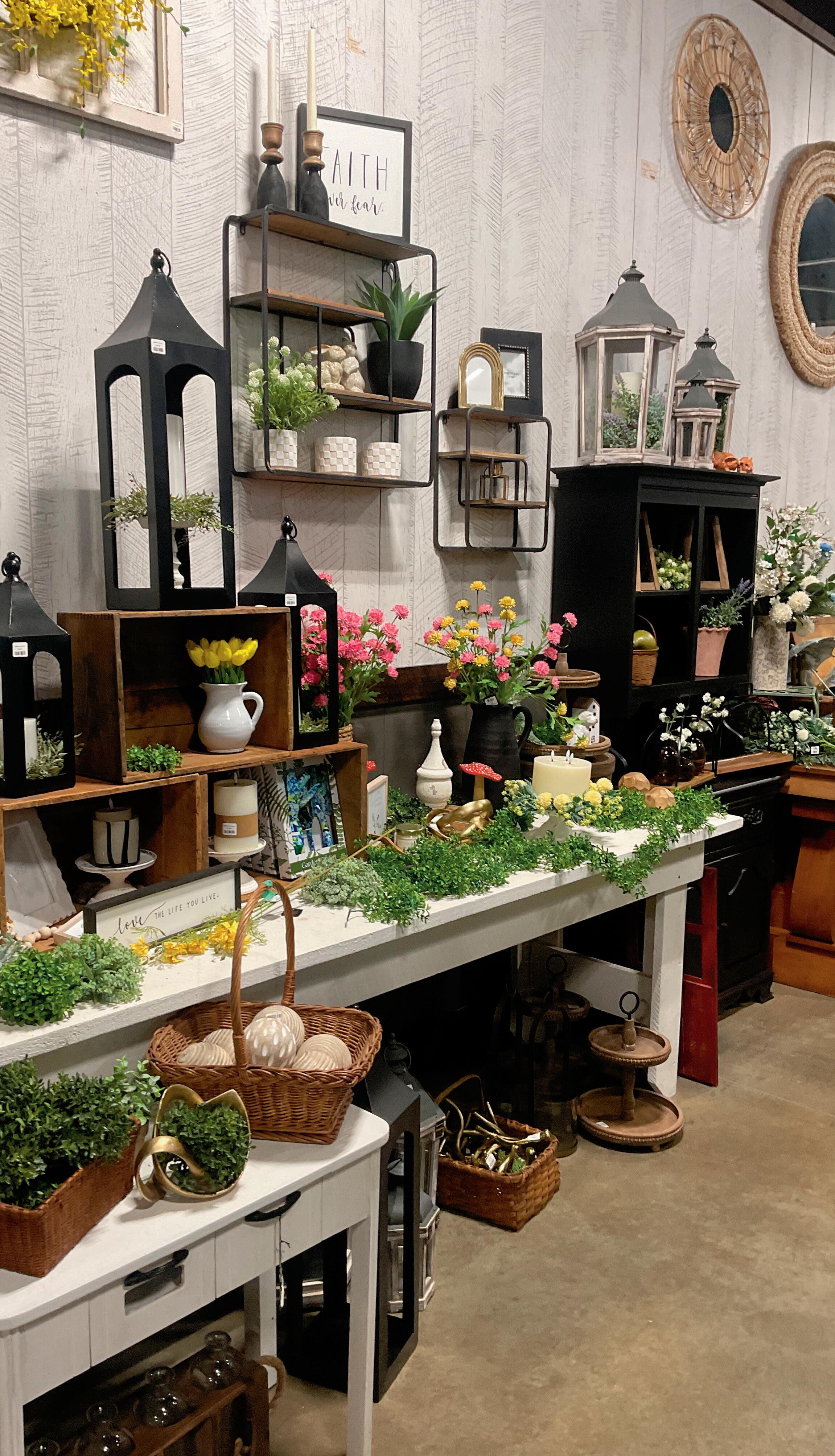 Plain & Simple provides those finishing touches, offering items such as candles, artificial greenery and kitchen decor. Artificial flowers designed to match farmhouse interiors are among the shop’s best-selling items. The displays also change frequently throughout the year, keeping the selection fresh for repeat visitors.
