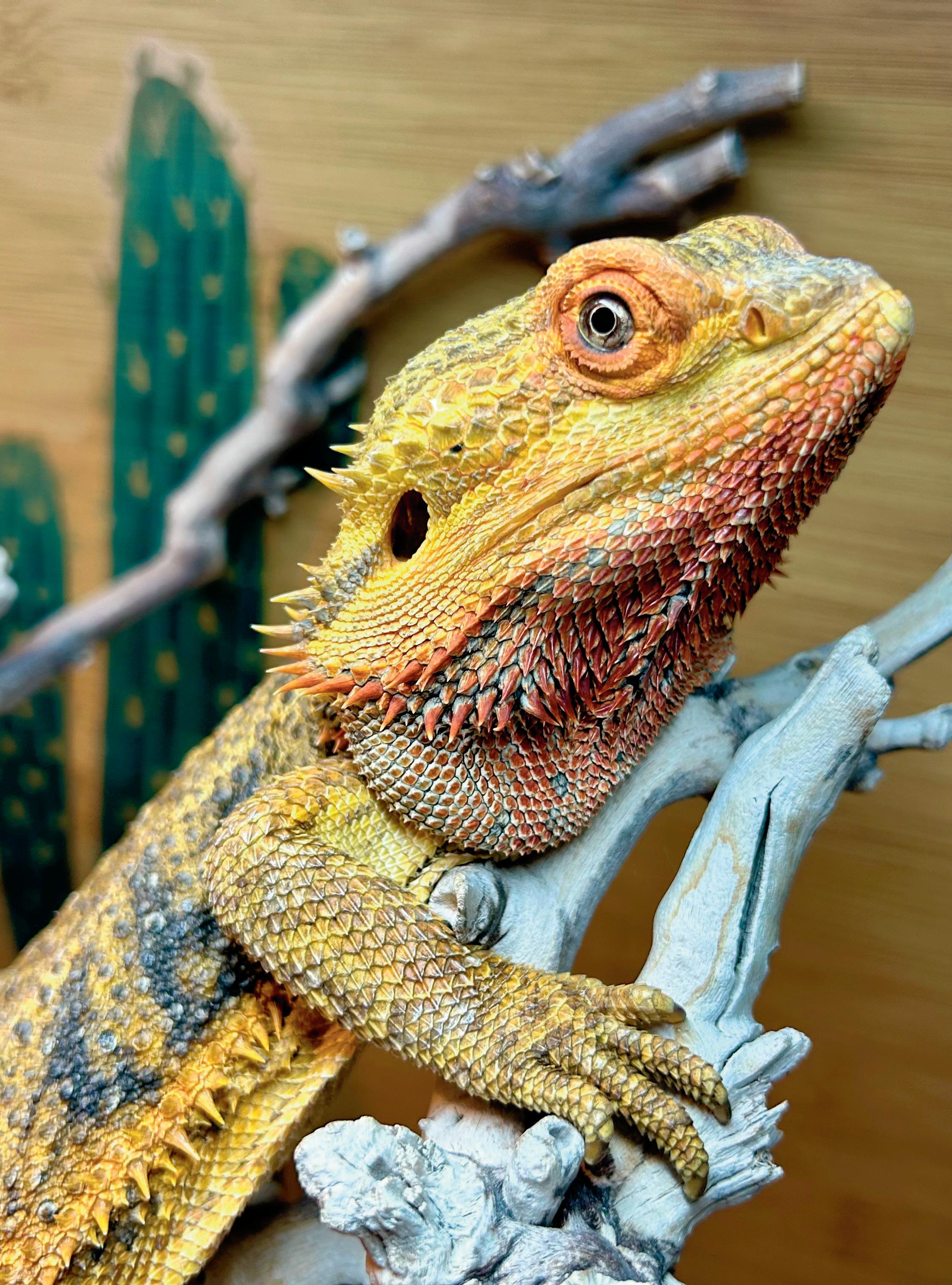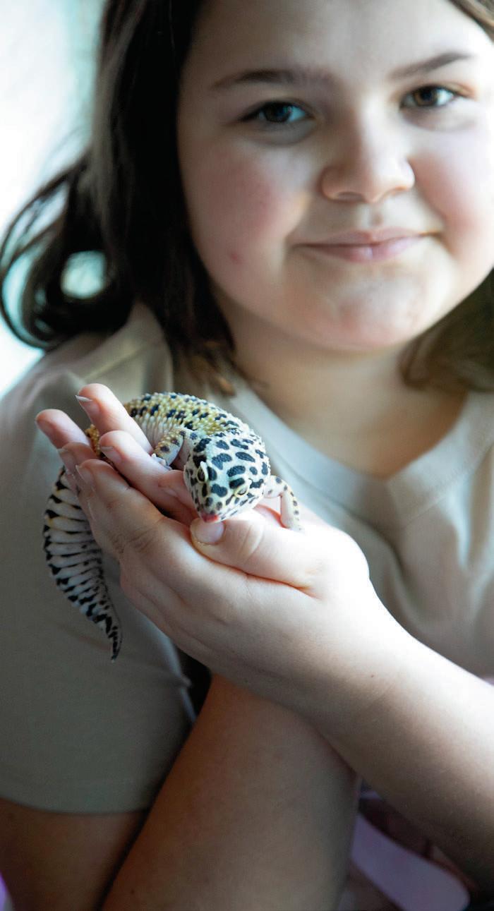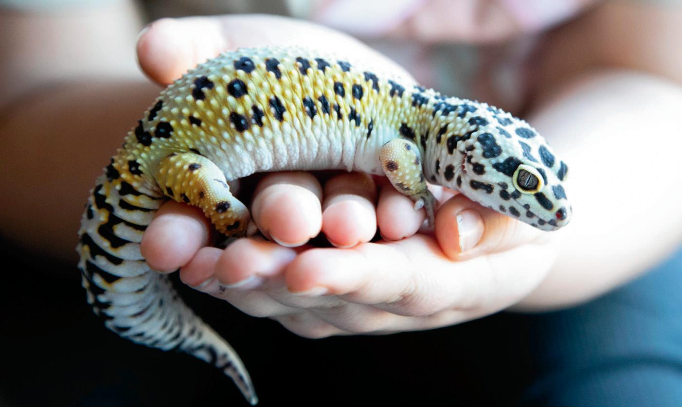 It’s fun to see other people really get into exotic pets. The stories in this issue show the dedication and passion people have for their animals, whether they’re reptiles, birds or something else entirely. I respect it, but it’s not for me. I will stick to our dog, Fudge, and the fish tank that I didn’t ask for — but somehow became my responsibility every other weekend. At least Fudge is happy to see me when I come home. Our fish just stare.